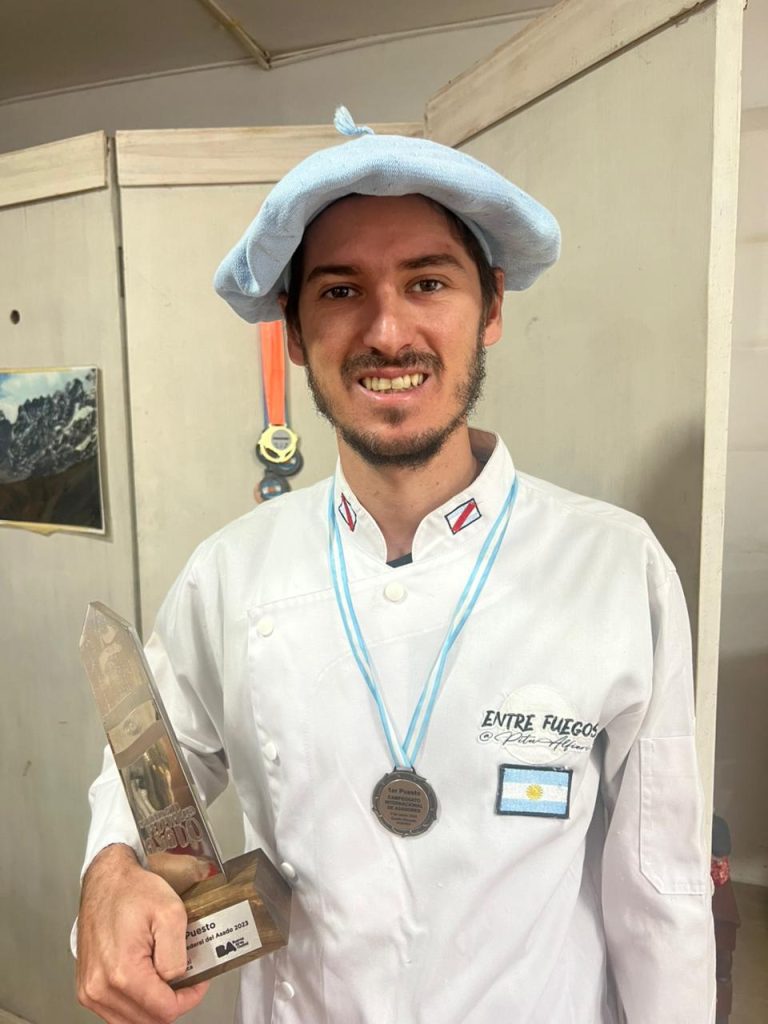 Aunque probó distintas técnicas de alta cocina, siempre volvió al fuego criollo. “Soy un joven soñador, cocinero de los fuegos”, dice. Competidor en torneos de asado, ganador de títulos nacionales e internacionales, formador en cursos en México, Perú y otros países, hoy es un representante de la gastronomía ancestral argentina.