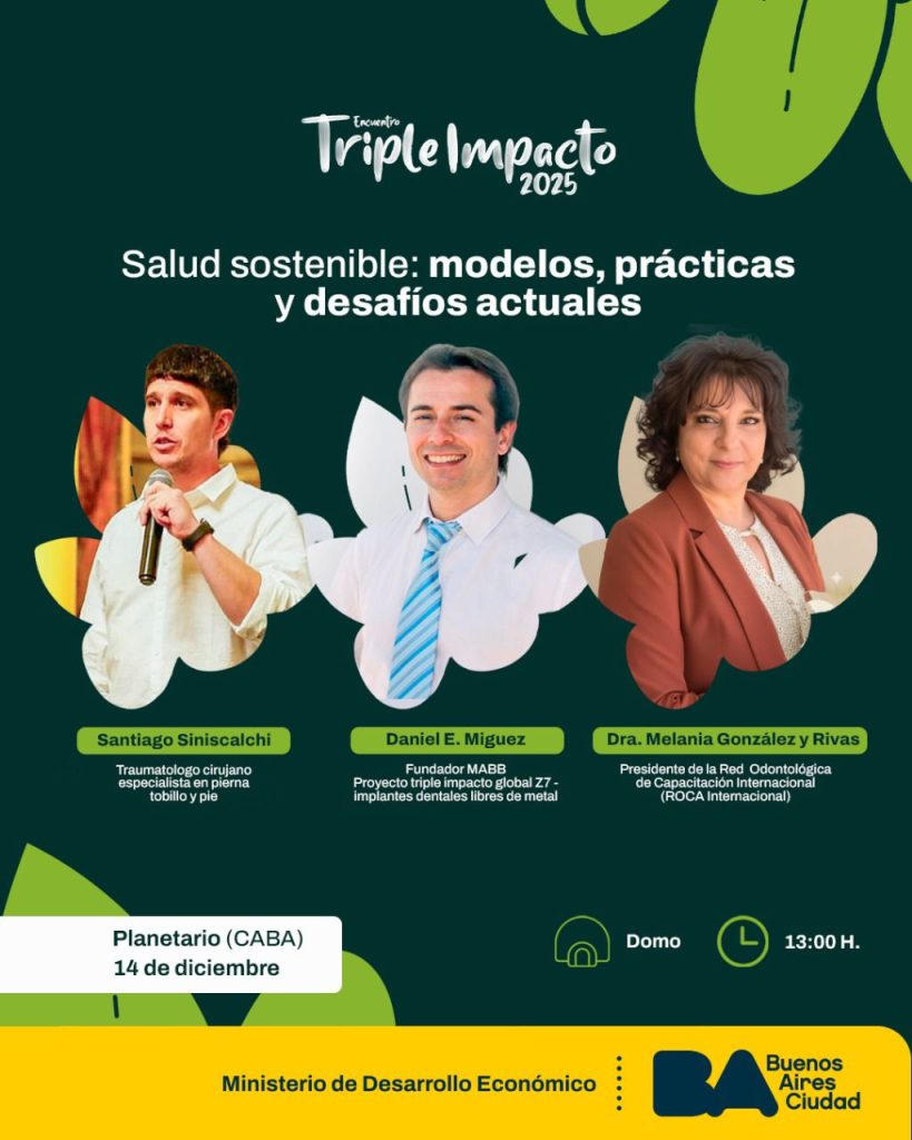 - Daniel E. Míguez: Fundador de MABB y líder del proyecto “Triple Impacto Global Z7”, que desarrolla implantes dentales libres de metal. Su trabajo es un ejemplo tangible de cómo la innovación tecnológica puede reducir el impacto ambiental sin comprometer la eficacia médica.